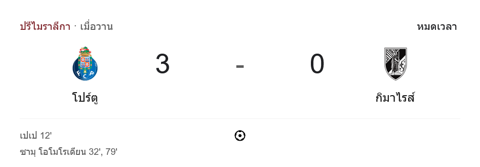 จาก : ผลบอลสด ปรีไมราลีกา ระหว่าง ปอร์โต้ 3-0 วิตอเรีย กิมาไรส์ วันนี้ 12/8/68 – บ้านกีฬา