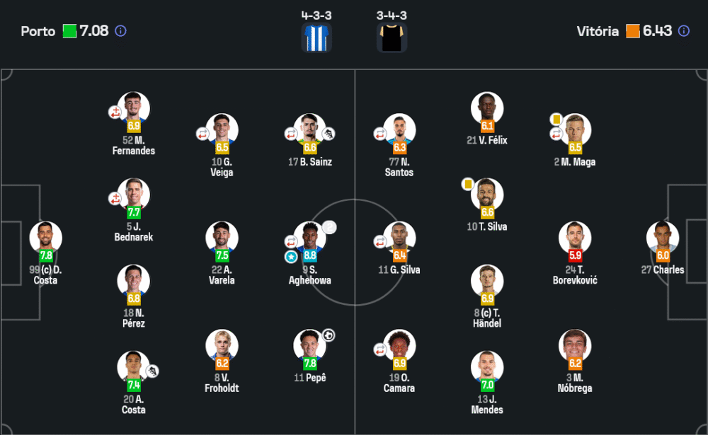 วิตอเรียพยายามปรับหมากส่งตัวรุกลงมาหวังตีไข่แตก แต่กลายเป็นปอร์โต้ที่ยังคงคุมจังหวะได้ทั้งหมด จนนาที 79 เจ้าบ้านตอกฝาโลงจากจังหวะที่วิลเลียม โกเมสเปิดบอลให้ซามู อเกเฮโฮวาซัดเน้นๆ เป็น 3-0 ช่วงท้ายเกมมีการเปลี่ยนตัวทั้งสองฝั่งเพื่อถนอมสภาพร่างกาย และมีใบเหลืองเกิดขึ้นเล็กน้อย เกมจบลงด้วยชัยชนะขาดลอยของปอร์โต้ เก็บสามแต้มเต็มพร้อมส่งสัญญาณชัดเจนว่าพวกเขามาเพื่อทวงแชมป์