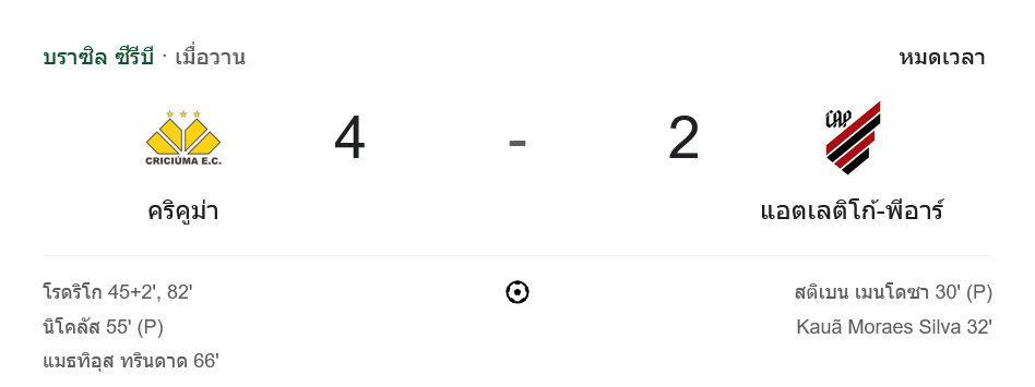 เกมมันส์ระดับ 5 ดาวที่สนามเหย้าของคริคูม่า จบลงด้วยชัยชนะสุดเร้าใจของเจ้าถิ่นที่ไล่บดแอตเลติโก้ พาราเนนเซ่จนพังคาถิ่น 4-2 ในศึกคัมปิโอนาโต บราซิเลียโร ซีรีบี ซึ่งแฟนๆ บ้านกีฬา ได้อัปเดต ผลบอลสด กันแบบนาทีต่อนาที และต้องบอกว่านี่คือเกมที่เต็มไปด้วยดราม่า ทั้งจุดโทษ ประตูตีเสมอ และการคัมแบ็กสุดโหดของเจ้าบ้าน