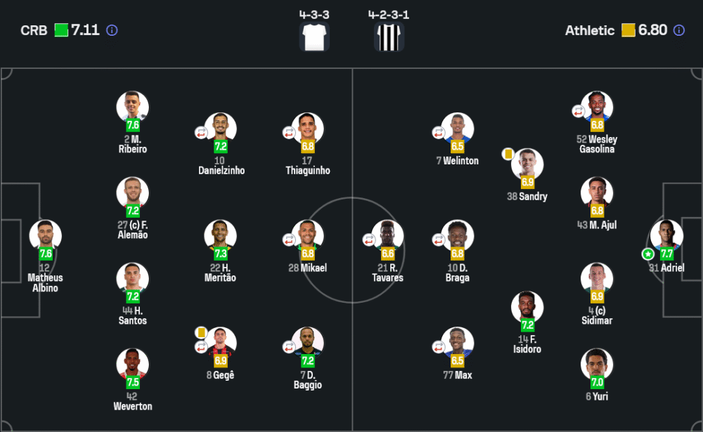 🔄 74′ คริสโตเฟอร์ แทน ดาเนียลซินโญ่ (CRB) / เวสลีย์ กาโซลิน่า เอเซเกียล (Athletic MG)