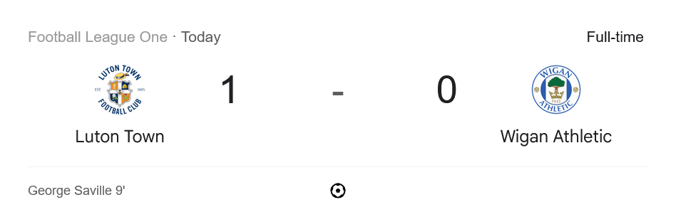 ศึกมันส์กลางสัปดาห์ในศึกลีกวัน อังกฤษ เกมที่สนามเคนิลเวิร์ธ โร้ด เจ้าบ้าน ลูตัน ทาวน์ เปิดรังเชือด วีแกน แอธเลติก ไปแบบสุดมันส์ 1-0 จากประตูชัยของ จอร์จ ซาวิลล์ ในนาทีที่ 9 เกมนี้ บ้านกีฬา ขอสรุปทุกเหตุการณ์สำคัญแบบเจาะลึกให้แฟนบอลติดตามไปพร้อมกับ ผลบอลสด บ้านผลบอล ที่เข้มข้นที่สุด