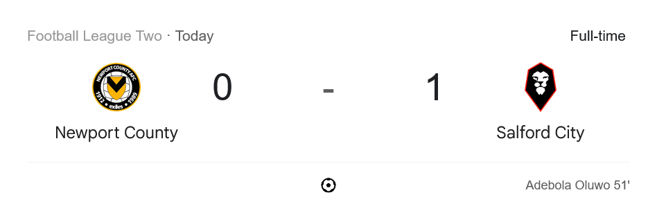 จุดเปลี่ยนสำคัญมาในนาทีที่ 51 เมื่อ อเดโบลา โอลูโว กองหลังตัวเก่งเติมขึ้นมาโหม่งพังประตูให้ ซอลฟอร์ด ซิตี้ ขึ้นนำ 1-0 แบบสุดมันส์ หลังจากนั้น นิวพอร์ต เดินหน้าลุยเต็มกำลัง แต่ติดทั้งเกมรับที่แข็งแกร่งและผู้รักษาประตูของทีมเยือน สุดท้ายเสียงนกหวีดดังจบเกม ซอลฟอร์ด คว้าชัยเหนือ นิวพอร์ต แบบหืดจับ