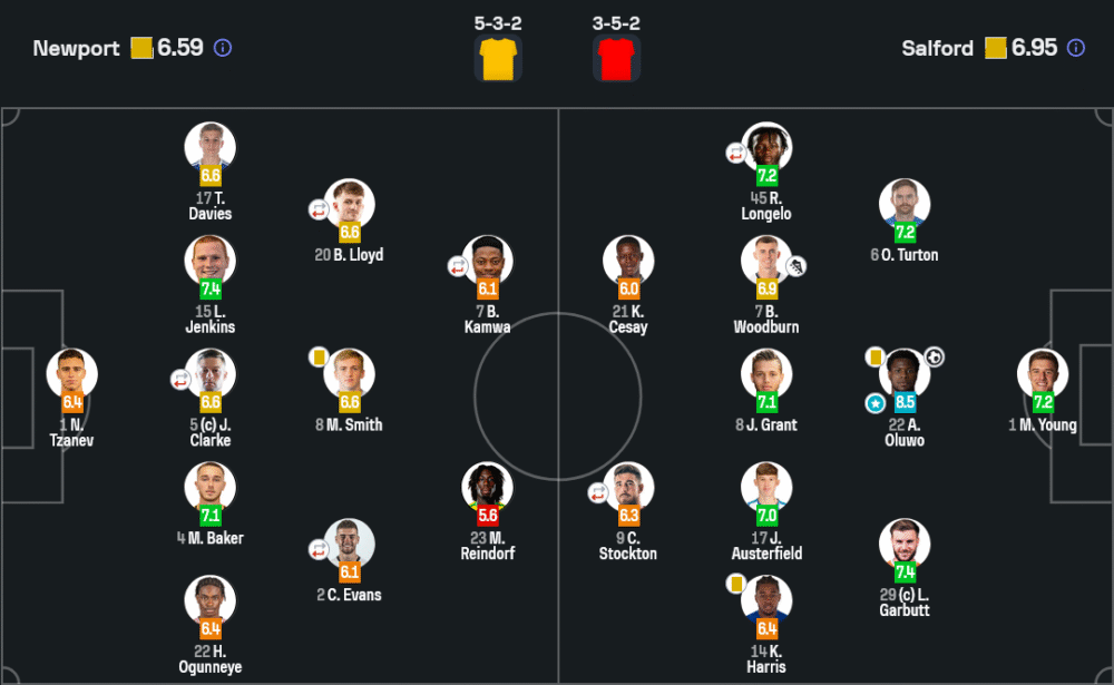 อเดโบลา โอลูโว กองหลังตัวเก่งของซอลฟอร์ด ซิตี้ คือผู้เล่นที่โดดเด่นที่สุดในเกมนี้ ไม่เพียงแค่ทำประตูชัยให้ทีม แต่ยังตัดบอล เคลียร์บอล และป้องกันเกมรุกของนิวพอร์ตได้อย่างเหนียวแน่น ได้คะแนนสูงสุด 8.5 จาก SofaScore
