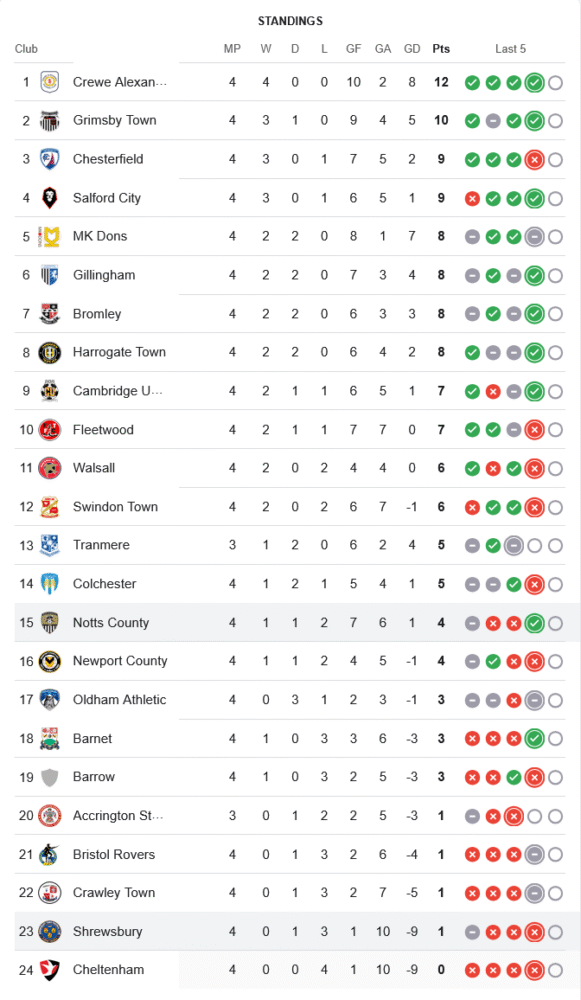 ชัยชนะนี้ทำให้น็อตต์สเคาน์ตี้ ขยับขึ้นมาอยู่อันดับ 15 มี 4 คะแนนจาก 4 นัด เริ่มหายใจโล่งขึ้นหลังต้นซีซั่นเป๋ไป ส่วน ชรูว์สบิวรี่ ยังวิกฤติ รั้งอันดับ 23 มีเพียง 1 แต้มจาก 4 นัด สถานการณ์เสี่ยงต่อการหนีตกชั้นอย่างหนัก หากไม่เร่งฟอร์มโดยเร็ว
