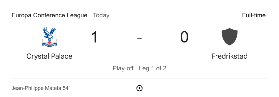 ชัยชนะนัดนี้ทำให้พาเลซกุมความได้เปรียบก่อนเลกสองทันที หากพวกเขาไม่พลาดในเกมเยือนที่นอร์เวย์ โอกาสเข้ารอบแบ่งกลุ่มยูโรปาคอนเฟอเรนซ์ลีกถือว่าสูงมาก ส่วนเฟรดริกซ์สตรัดต้องลุ้นสร้างปาฏิหาริย์ในบ้าน ซึ่งจากรูปเกมนัดแรกถือว่ายากพอสมควร