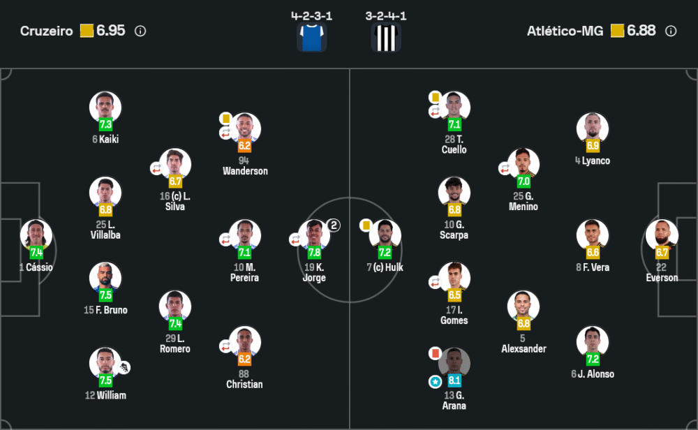 เริ่มครึ่งหลังได้แค่ 3 นาที ไคโอ จอร์จ กดประตูที่สองของตัวเองในนาที 48 พาครูไซโร่ทิ้งห่าง 2-0 บดขยี้กำลังใจทีมเยือนแทบหมดสิ้น แม้แอตฯ มิไนโร่ จะพยายามเปิดเกมบุกหนักขึ้น ครองบอลสูงถึง 74% แต่จังหวะจบสกอร์ไร้ความเฉียบคม สุดท้ายช่วงทดเจ็บนาที 90+1 กิเยร์เม่ อาราน่า แข้งทีมเยือนโดนใบแดงไล่ออกจากสนามจากจังหวะเล่นนอกเกม ทำให้สถานการณ์ย่ำแย่ลงไปอีก จบเกมครูไซโร่ชนะ 2-0 แบบสุดมันส์