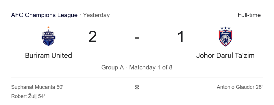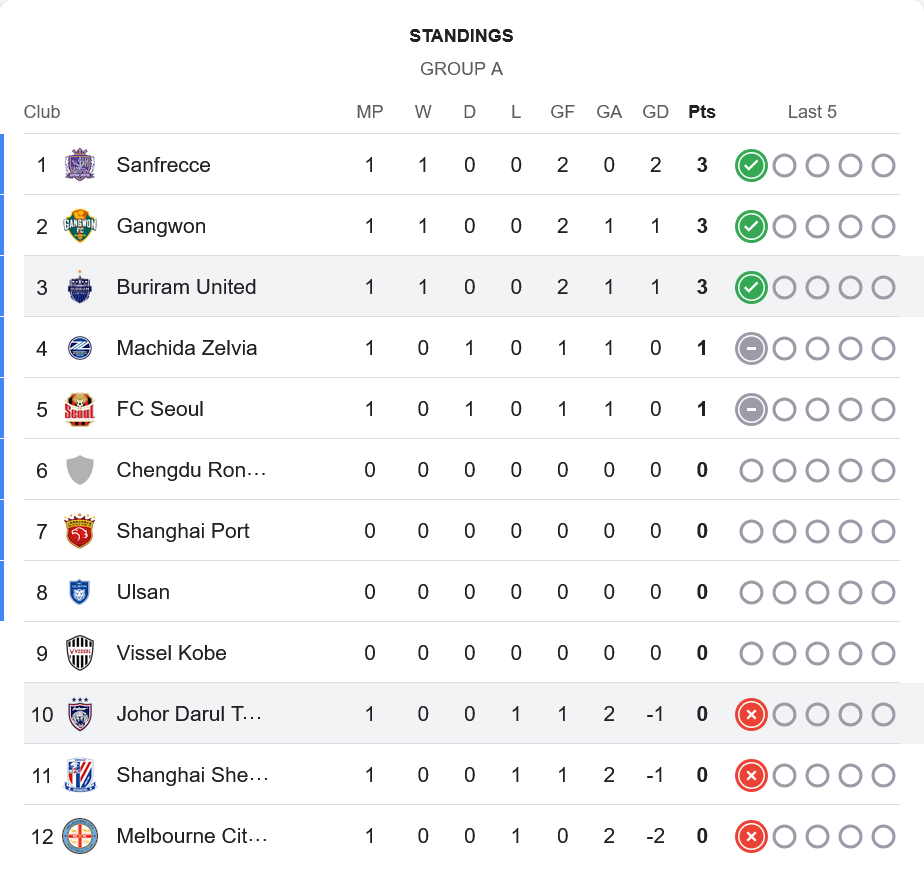 สามคะแนนเกมนี้ทำให้บุรีรัมย์ ยูไนเต็ด เปิดหัวกลุ่ม A อย่างสวยงาม เก็บ 3 แต้ม เท่าทีมแกร่งในกลุ่ม แต่ประตูได้เสียยังเป็นรอง จึงยืนโซนบนแต่ยังต้องเร่งเครื่องเพื่อยึดหัวตารางในแมตช์ถัดไป ส่วนยะโฮร์เริ่มต้นมือเปล่า ต้องเร่งแก้ปัญหาจังหวะสุดท้ายถ้ายังอยากลุ้นเข้ารอบ