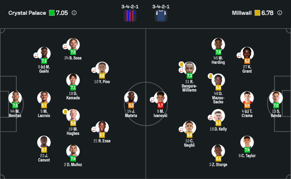 คริส ริชาร์ดส์ กองหลังพาเลซ คว้ารางวัล ผู้เล่นยอดเยี่ยมประจำเกม ด้วยคะแนน 8.2 จากการทำประตูสำคัญในเกมและยิงจุดโทษไม่พลาด แถมยังสกัดบอลช่วยทีมหลายครั้ง ถือเป็นหัวใจแนวรับและคนที่แบกทีมเข้าสู่รอบต่อไป