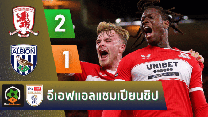 ศึก อีเอฟแอลแชมเปียนชิป อังกฤษ ค่ำคืนที่ผ่านมาเป็นการดวลเดือดระหว่าง มิดเดิลสโบรห์ เปิดรังรับการมาเยือนของ เวสต์บรอมมิช อัลเบียน เกมนี้เต็มไปด้วยความเข้มข้นตั้งแต่ต้นจนจบ และจบลงด้วยชัยชนะของเจ้าบ้าน 2-1 เก็บสามแต้มล้ำค่า พร้อมทะยานขึ้นนำจ่าฝูงของตาราง บ้านผลบอล อย่างสง่างาม