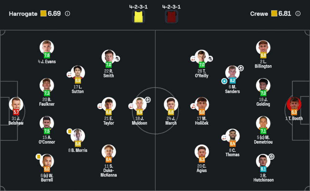 เกมนี้ ฮาโรเกต พยายามเน้นการเล่นริมเส้นและใช้การเข้าทำเร็วจาก มัลดูน และสมิธ แต่เกมรับยังมีปัญหา โดยเฉพาะจังหวะหลุดตำแหน่งของแนวรับ ทำให้โดนเจาะในช่วงท้าย ขณะที่ ครูว์ เน้นการครองบอลและการต่อบอลสั้นที่แม่นยำ แซนเดอร์สทำหน้าที่จ่ายบอลและยิงไกลได้อย่างยอดเยี่ยม ส่งผลให้ครองเกมได้ดีกว่าในครึ่งหลัง บทสรุปจากมุมมอง วิเคราะห์บอล เกมนี้ ครูว์มีความเฉียบคมและวินัยเกมรับที่แน่นกว่าทำให้คว้าชัยสำคัญ