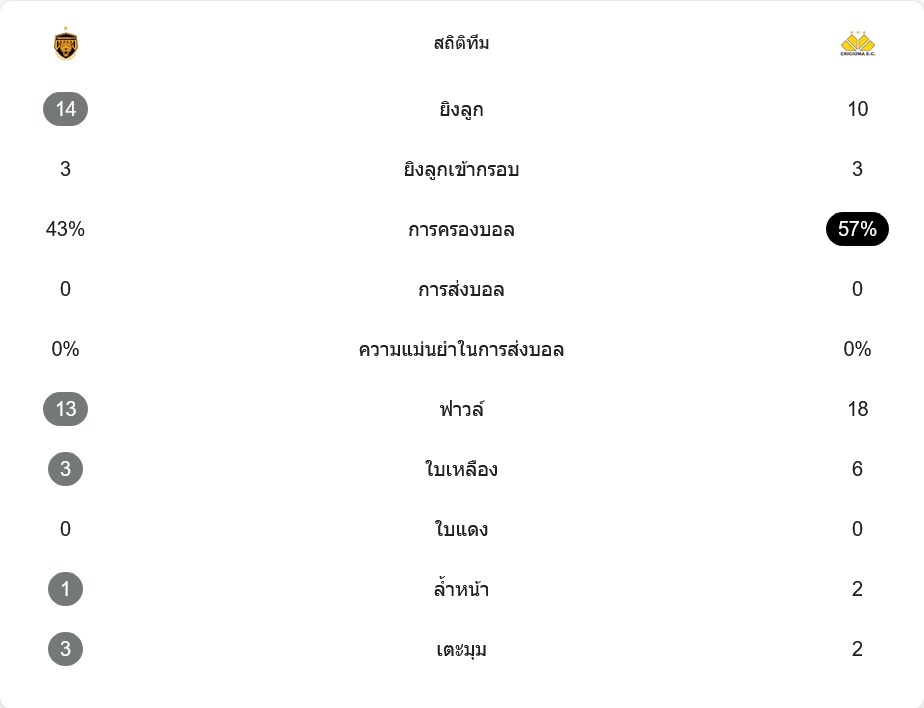 วิเคราะห์บอล ด้าน คริคูม่า เน้นการครองบอลและคอนโทรลเกมตรงกลาง (ครองบอล 57%) ใช้ระบบ 3-4-2-1 พยายามเปิดเกมบุกจากแดนกลางโดยมี เฟลิปีโญ่ เป็นตัวขับเคลื่อน แต่จุดอ่อนอยู่ที่แนวรับที่หลวมในช่วงท้ายเกม ส่งผลให้โดนยิงแซงในช่วงเวลาสำคัญ จึงต้องกลับไปปรับแนวรับหากหวังกลับมาเก็บแต้มในเกมถัดไป