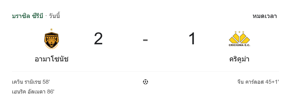ศึกฟุตบอล คัมปิโอนาโต บราซิเลียโร่ ซีรีบี คู่เดือดเมื่อคืนนี้ “อมาโซนาส เอฟซี” เปิดบ้านเชือด “คริคูม่า” สุดมัน 2-1 หลังโดนนำก่อนในครึ่งแรก แต่โชว์ความแกร่งคัมแบ็กคว้าชัยสุดระทึก บ้านกีฬา พาเกาะติดทุกจังหวะเกมพร้อม ผลบอลสด ที่แฟนบอลต้องร้องว้าวกับการพลิกเกมแบบสุดมันของเจ้าถิ่น