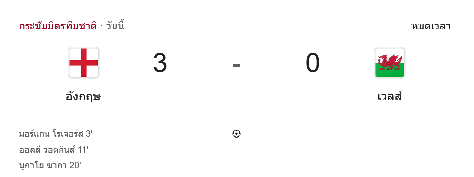 ศึก กระชับมิตรทีมชาติ ที่สนามเวมบลีย์ เป็นเกมที่แฟนบอลทั่วโลกติดตามแบบ ผลบอลสด อย่างตื่นเต้น เมื่อทีมชาติ อังกฤษ เปิดบ้านถล่ม เวลส์ ขาดลอย 3-0 เกมนี้ขุนพล “สิงโตคำราม” ระเบิดฟอร์มดุดันตั้งแต่ต้นเกม เดินเครื่องใส่ไม่ยั้งและปิดบัญชีตั้งแต่ครึ่งแรก