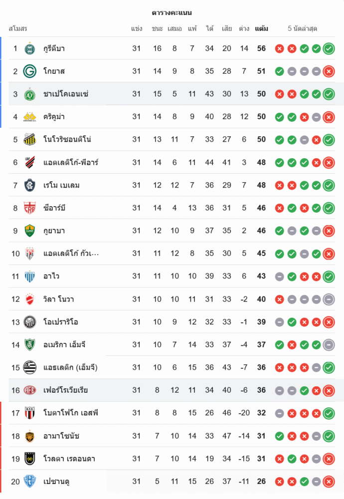 แฟนบอลสามารถติดตาม บ้านผลบอลและ โปรแกรมบอล พร้อมรายงานสดการแข่งขันฟุตบอลลีกบราซิล และลีกดังทั่วโลก ได้ที่ บ้านกีฬา อัปเดตไว ครบทุกประเด็นบอลสำคัญ