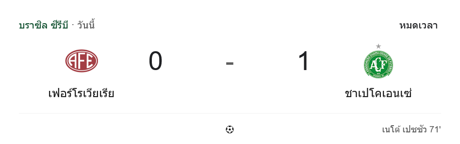 บ้านผลบอล สรุปหลังเกม คัมปิโอนาโต บราซิเลียโร ซีรีบี เดือด! เปสซัว ซัดชัยพา ชาเปโคเอนเซ่ บุกเชือด เฟอร์โรเวียเรีย 1-0 ลุ้นเลื่อนชั้นเข้มข้น