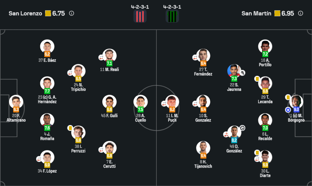 - 🟨 45’ T. Lecanda (San Martín) ใบเหลือง – ฟาวล์