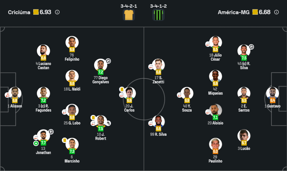 - 🔁 69’-88’ คริคูม่าปรับเกมส่ง João Carlos, Georgemy, Yan Souto, Matheus Trindade, Luiz Henrique ลงสนาม