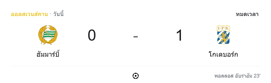 ผลบอลออลสเวนส์คาน 2024 ระหว่าง ทีม ฮัมมาร์บี้ vs ทีม ไอเอฟเค โกเตบอร์ก วันนี้ 16 กรกฎาคม 2567 ดูบอลย้อนหลัง คลิปไฮไลท์ ดูบอลออลสเวนส์คาน 2024