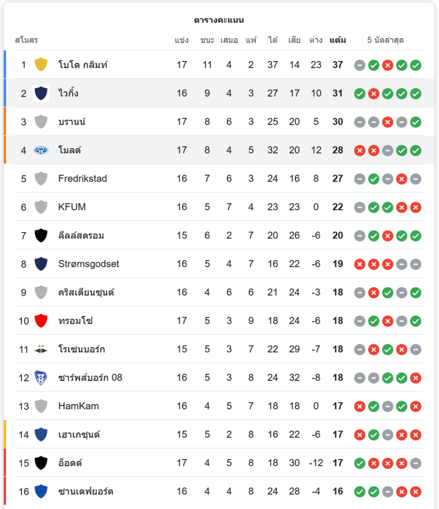 ตารางคะแนนล่าสุด