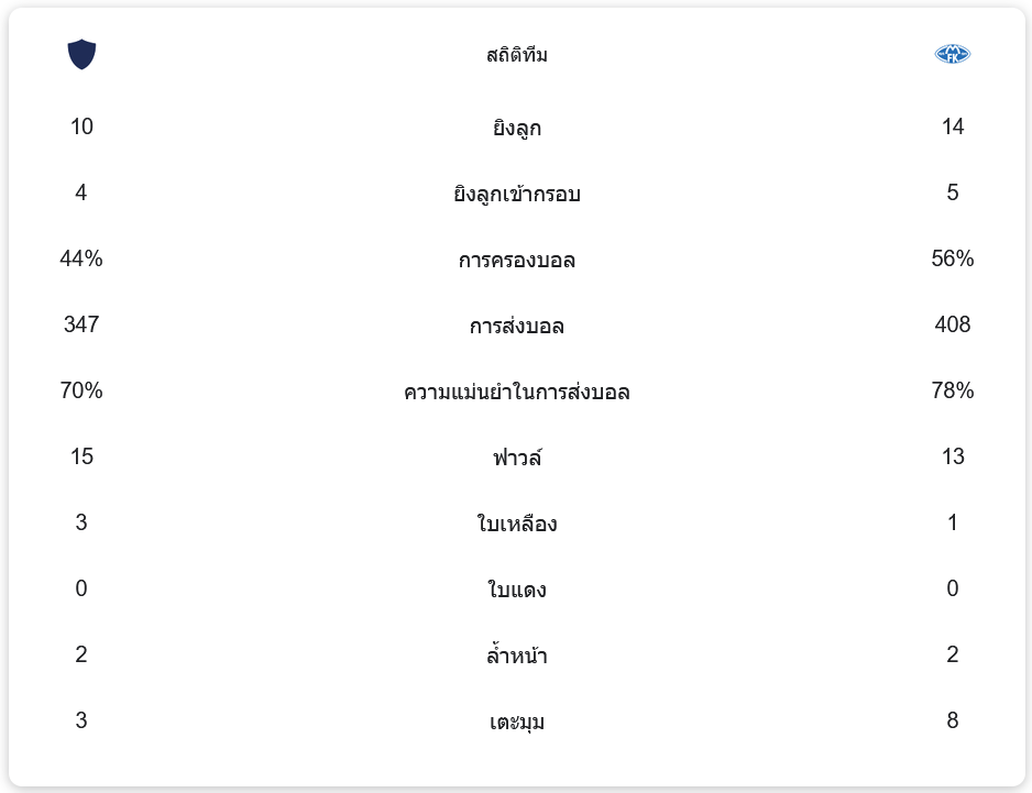 • การครองบอล: ไวกิ้ง เอฟเค 44% – 56% โมลด์