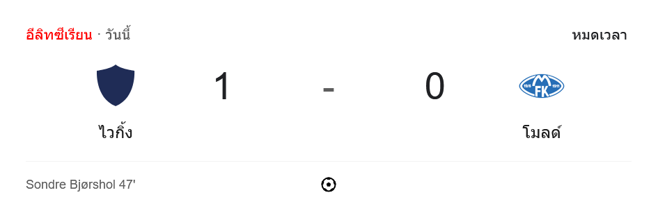 ผลบอลนอร์เวย์ ทิปเปลีเก้น 2024 ระหว่าง ไวกิ้ง เอฟเค 1-0 โมลด์ วันนี้ 29/7/67