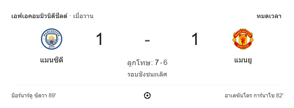 แมนเชสเตอร์ ยูไนเต็ด 1-1 แมนเชสเตอร์ ซิตี้ (จุดโทษ 7-6) เอฟเอคอมมิวนิตีชีลด์ 2024