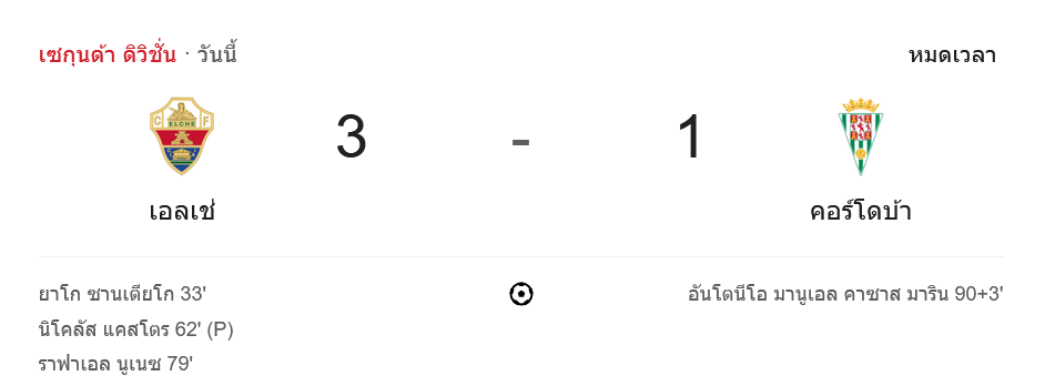 ผลบอลเซกุนด้า ดิวิชั่น 2024 ระหว่าง ทีมเอลเช่ vs ทีมคอร์โดบ้า วันนี้ 3/9/67 ดูบอลย้อนหลัง คลิปไฮไลท์ ดูบอลเซกุนด้า ดิวิชั่น 2024