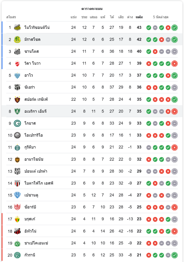 ผลบอลคัมปิโอนาโต บราซิเลียโร ซีรีบี 2024 มิราสโซล 1-0 อเมริกา เอ็มจี