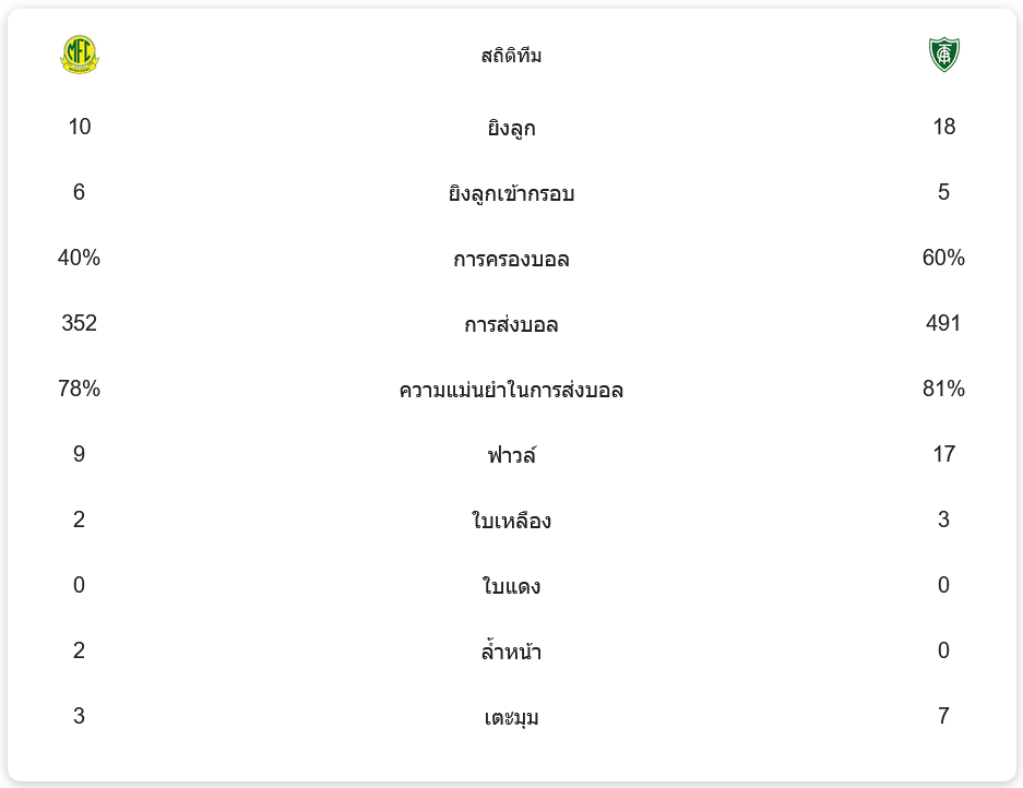 บ่งบอกถึงการครองบอลที่เหนือกว่าของอเมริกา เอ็มจี โดยทีมเยือนมีเปอร์เซ็นต์การครองบอลสูงถึง 60% และมีความแม่นยำในการส่งบอลที่ 81% จากการส่งบอลทั้งหมด 491 ครั้ง ในขณะที่มิราสโซลมีการครองบอลเพียง 40% และมีความแม่นยำในการส่งบอลที่ 78% จากการส่งบอลทั้งหมด 352 ครั้ง แม้จะมีการครองบอลน้อยกว่า แต่ความสามารถในการใช้โอกาสที่มีของมิราสโซลทำให้พวกเขาสามารถทำประตูได้และเก็บชัยชนะในครั้งนี้