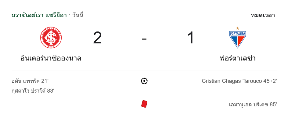 - นาทีที่ 85: ใบแดงของ เอมานูเอล บริตซ (ฟอร์ตาเลซ่า)