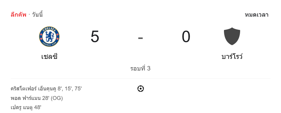 ผลบอลอีเอฟแอลคัพ 2024 ระหว่าง ทีมเชลซี vs ทีมบาร์โรว์ วันนี้ 25/9/67 ดูบอลย้อนหลัง คลิปไฮไลท์ ดูบอลอีเอฟแอลคัพ 2024