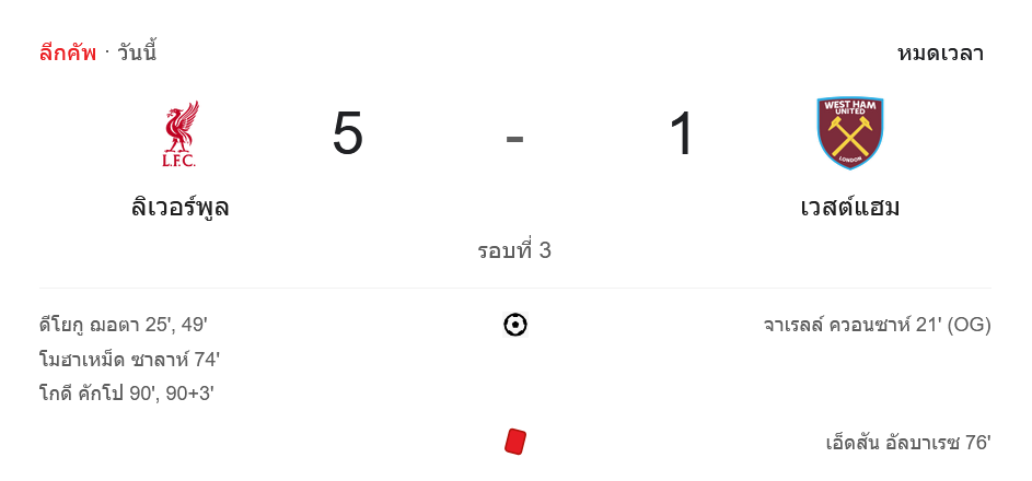 ไฮไลท์บอลอีเอฟแอลคัพ 2024 ลิเวอร์พูล 5-1 เวสต์แฮมยูไนเต็ด วันนี้ 26/9/67 – บ้านกีฬา (bankeela1.com)