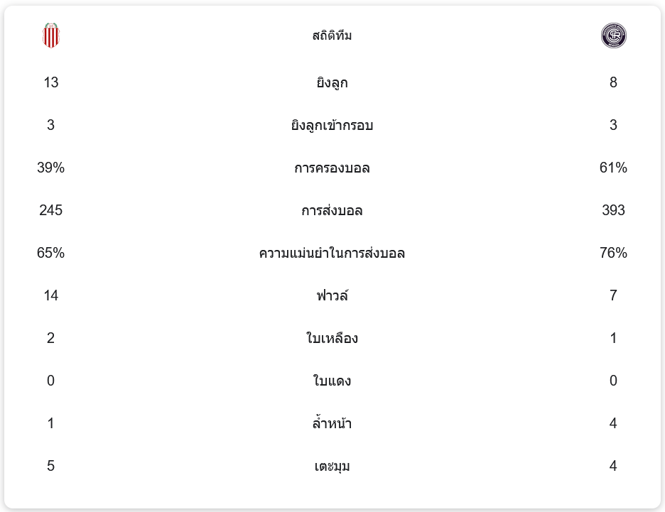 การแข่งขันนี้แสดงให้เห็นถึงความเหนือกว่าของ อินดิเพนเดียนเต้ ริวาดาเวีย ในการครองบอลที่สูงถึง 61% ขณะที่ บาร์รากัส เซ็นทรัล ครองบอลเพียง 39% แต่ยังมีโอกาสยิงมากกว่า โดยยิงทั้งหมด 13 ครั้ง และยิงเข้ากรอบ 3 ครั้ง เทียบกับอินดิเพนเดียนเต้ ริวาดาเวียที่ยิง 8 ครั้ง และยิงเข้ากรอบ 3 ครั้งเช่นกัน ในส่วนของการฟาวล์ ทั้งสองทีมทำฟาวล์รวมกันถึง 21 ครั้ง โดยบาร์รากัสฟาวล์ 14 ครั้งและอินดิเพนเดียนเต้ ริวาดาเวียฟาวล์ 7 ครั้ง ซึ่งบ่งบอกถึงความเข้มข้นของเกมนี้