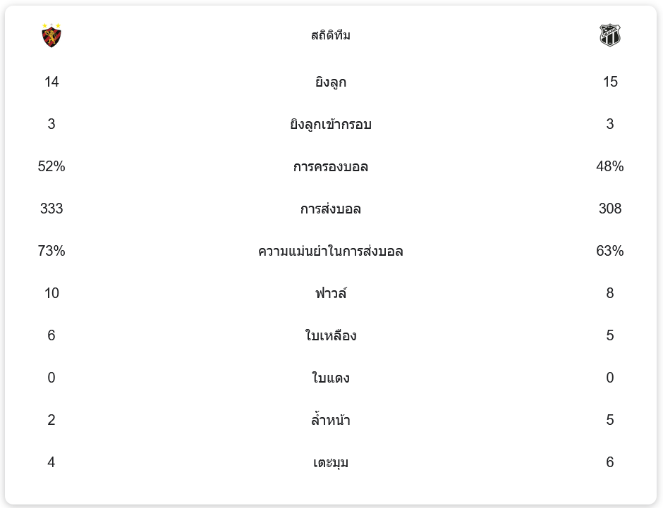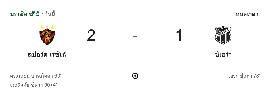 - นาทีที่ 90+4: เวลลิงตัน ซิลวา ยิงประตูชัยให้ สปอร์ต เรซิเฟ่ ชนะ 2-1