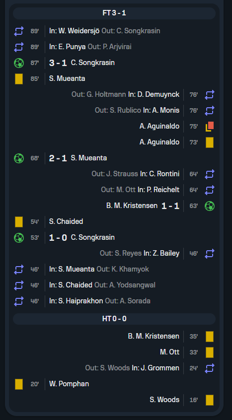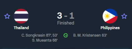 • นาทีที่ 68: ทีมชาติไทย ขึ้นนำอีกครั้ง 2-1 จากการยิงของ ศุภณัฏฐ์ เหมือนตา