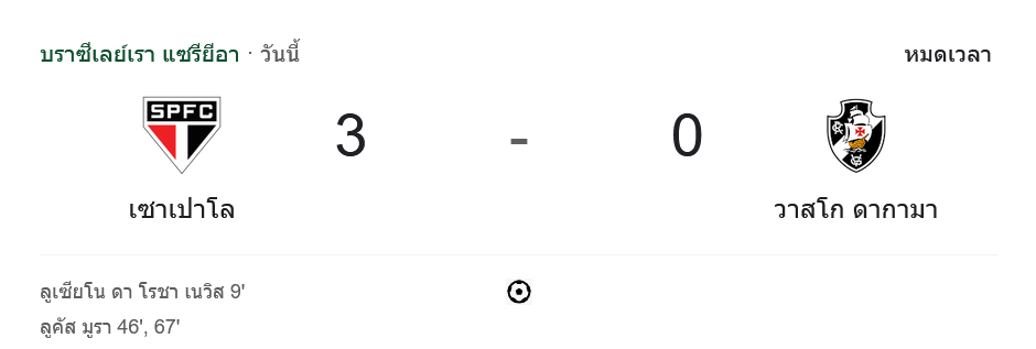 ผลบอลสดกังเปโอนาตู บราซีเลย์รู แซรียีอา 2024 ระหว่าง ทีมเซาเปาโล vs ทีมวาสโก ดา กามา (อาร์เจ) วันนี้ 17/10/67 ดูบอลย้อนหลัง คลิปไฮไลท์ ดูบอลกังเปโอนาตู บราซีเลย์รู แซรียีอา 2024