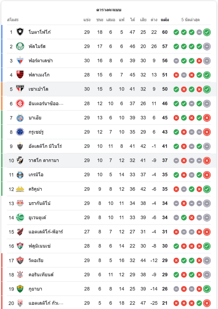 ชัยชนะครั้งนี้ทำให้ เซาเปาโล ขยับขึ้นมาอยู่ในอันดับที่ 5 ของตารางคะแนน มี 50 คะแนนจากการลงเล่น 30 นัด ขณะที่ วาสโก ดา กามา ยังคงอยู่ในอันดับที่ 10 มี 37 คะแนน การพ่ายแพ้ครั้งนี้ส่งผลให้วาสโก ดา กามาพลาดโอกาสทำแต้มไล่ทีมอันดับสูงขึ้น