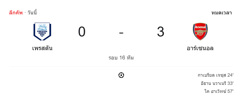 ผลบอลสดอีเอฟแอลคัพ 2024 ระหว่าง ทีมเพรสตัน นอร์ท เอนด์ vs ทีมอาร์เซนอล วันนี้ 31/10/67 ดูบอลย้อนหลัง คลิปไฮไลท์ ดูบอลอีเอฟแอลคัพ 2024