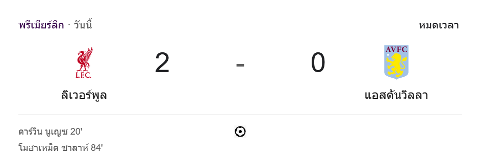 บ้านผลบอล สรุปผล ลิเวอร์พูล ขยี้ แอสตัน วิลล่า คว้าชัยชนะสุดมัน 2-0 ในศึกพรีเมียร์ลีก!