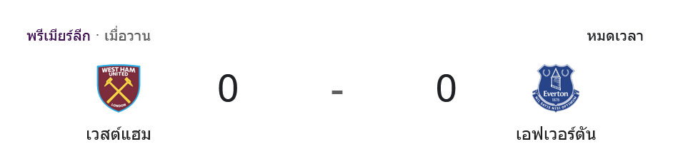 ครึ่งแรก ในเกมพรีเมียร์ลีก 2024 เวสต์แฮม ยูไนเต็ด เปิดบ้านรับการมาเยือนของ เอฟเวอร์ตัน โดยเกมนี้ไม่มีทีมใดสามารถทำประตูได้ในช่วงครึ่งแรก แม้ว่าจะมีการครองบอลที่สูสีกันก็ตาม ฝั่งเจ้าบ้าน เวสต์แฮม พยายามบุกเข้าหากรอบประตูหลายครั้ง โดยใช้ มิคาอิล อันโตนิโอ เป็นศูนย์กลางในการโจมตี ขณะที่ เอฟเวอร์ตัน เน้นการครองบอลเพื่อควบคุมจังหวะเกมและลดโอกาสของเจ้าบ้าน