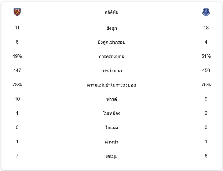 - 🟨 88′ ใบเหลือง วลาดิเมียร์ คูฟาล (เวสต์แฮม)