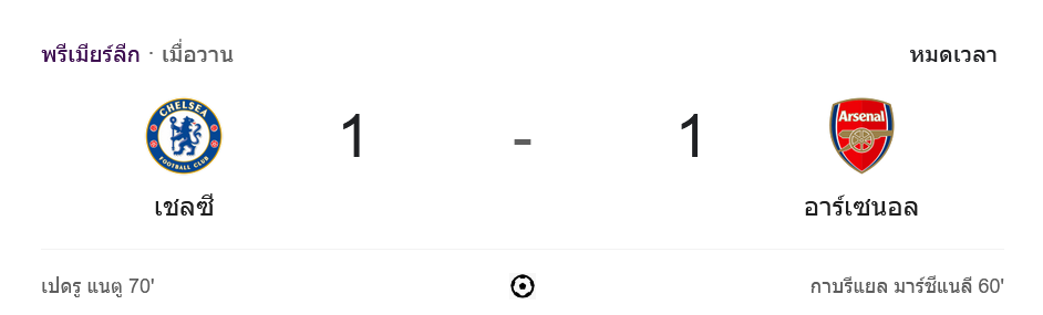 การแข่งขันพรีเมียร์ลีก 2024 ระหว่าง เชลซี และ อาร์เซนอล จบลงด้วยผลเสมอสุดเดือด 1-1 ในเกมที่เต็มไปด้วยความเข้มข้นและการปะทะแบบไม่หยุดหย่อน เกมนี้ทั้งสองทีมทำผลงานกันอย่างสูสี บ้านกีฬา พาท่านเจาะลึก ผลบอลสด และสรุปเนื้อหาของเกมสุดมันส์นี้ไปพร้อมกัน