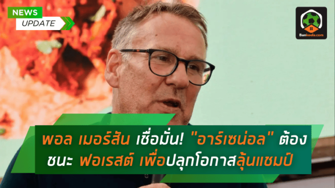 พอล เมอร์สัน อดีตมิดฟิลด์ตัวเก่งของ อาร์เซนอล ออกมาฟันธงอย่างหนักแน่นว่า “ไอ้ปืนใหญ่” จะกลับมาคว้าชัยชนะในเกมสำคัญศึก พรีเมียร์ลีก อังกฤษ นัดเปิดบ้านรับมือ น็อตติ้งแฮม ฟอเรสต์ วันเสาร์ที่ 23 พฤศจิกายนนี้ พร้อมชี้ว่าเกมนี้คือจุดเปลี่ยนสำคัญหากทีมต้องการกลับสู่เส้นทางลุ้นแชมป์ลีก