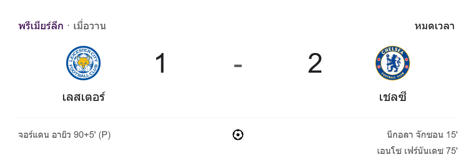 - ⚽ นาทีที่ 90+5: จอร์แดน อายิวยิงจุดโทษให้เลสเตอร์ตีไข่แตก