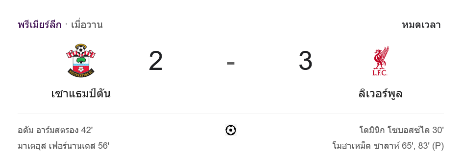 จาก : ผลบอลสด พรีเมียร์ลีก 2024 ระหว่าง เซาแธมป์ตัน 2-3 ลิเวอร์พูล วันนี้ 24/11/67 – บ้านกีฬา