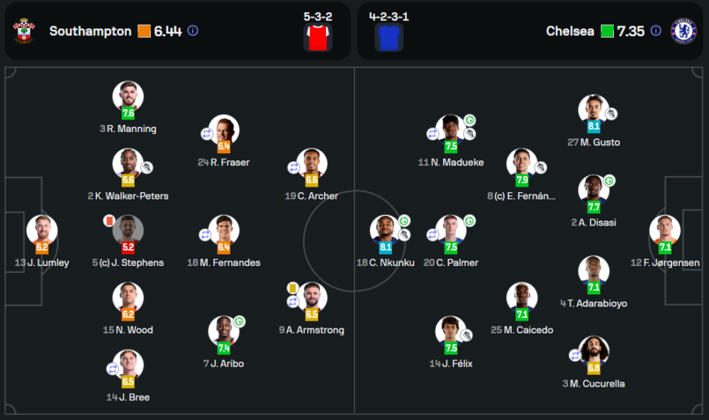 เชลซีเลือกแผน 4-2-3-1 เพื่อเน้นการควบคุมแดนกลางและการโจมตีที่หลากหลาย เอ็นคุนคู และ มาดูเอเก้ มีบทบาทสำคัญในการเชื่อมเกมรุก ขณะที่เซาแธมป์ตันใช้แผน 5-3-2 เพื่อเสริมความเหนียวแน่นในเกมรับ แต่การโดนใบแดงส่งผลกระทบอย่างมากต่อแผนการเล่นของทีม วิเคราะห์บอลเห็นได้ชัดว่าเชลซีมีความได้เปรียบทั้งในแง่การครองบอลและความแม่นยำในการส่งบอล