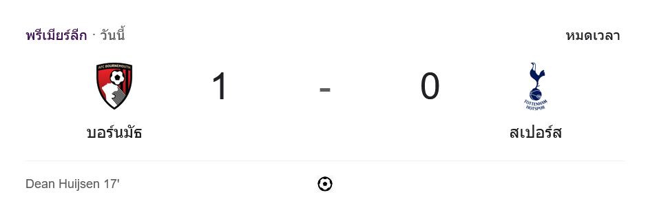 โปรแกรมนัดถัดไปของ บอร์นมัธ และ สเปอร์ส ยังไม่ประกาศใน ตารางบอล หากมีความคืบหน้าจะอัปเดตให้ทราบที่ บ้านกีฬา