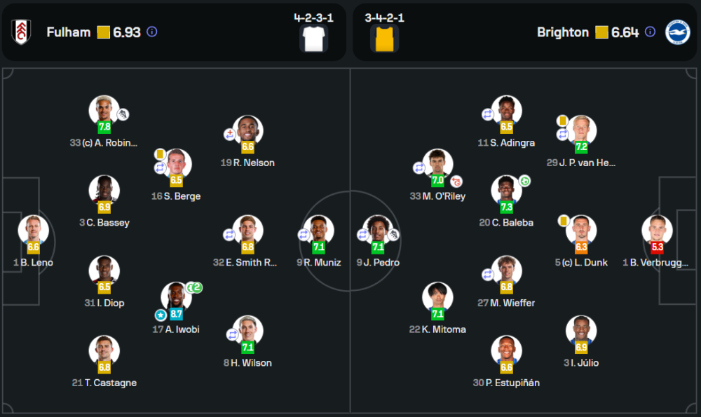 รายชื่อนักเตะตัวจริงและการเปลี่ยนตัว