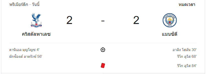 จบเกม: คริสตัล พาเลซเสมอกับแมนเชสเตอร์ ซิตี้ 2-2
