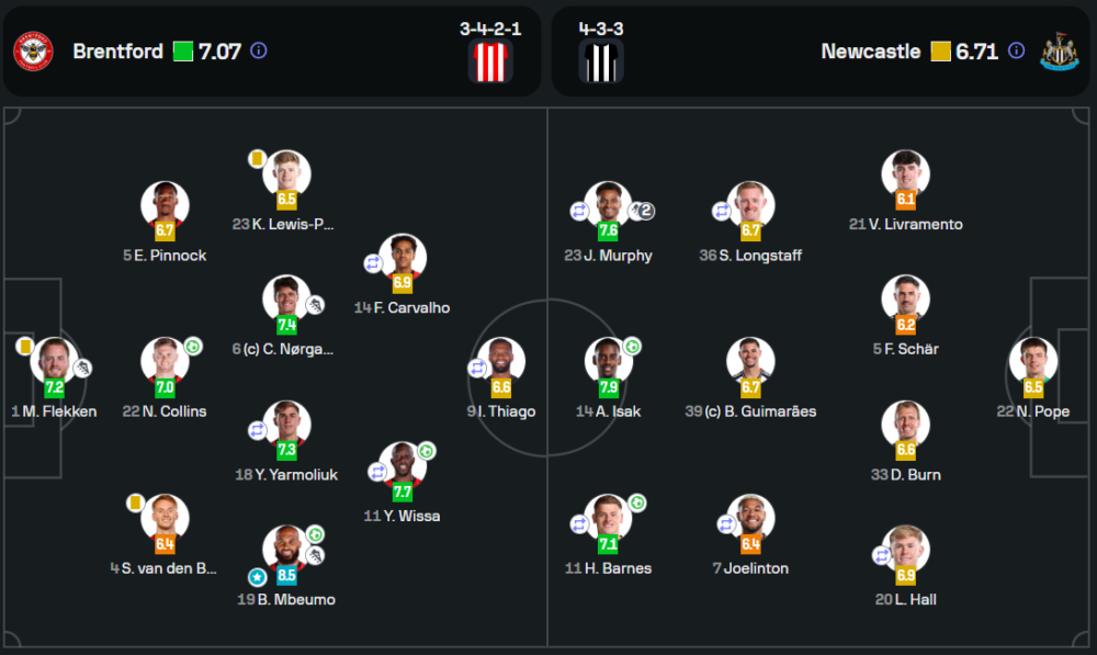 เบรนท์ฟอร์ดมาในแผน 3-4-2-1 ที่เน้นการเล่นเกมรุกด้วยปีกที่รวดเร็วและการตัดเกมในแดนกลาง ขณะที่นิวคาสเซิ่ลเลือกใช้แผน 4-3-3 ที่เน้นการสร้างโอกาสผ่านการครองบอลและเกมสวนกลับเร็ว บ้านกีฬาเห็นชัดว่าเบรนท์ฟอร์ดมีความคมกว่าในจังหวะสุดท้าย ส่วนเกมรับของนิวคาสเซิ่ลมีช่องโหว่จากการยืนตำแหน่งที่ไม่รัดกุม